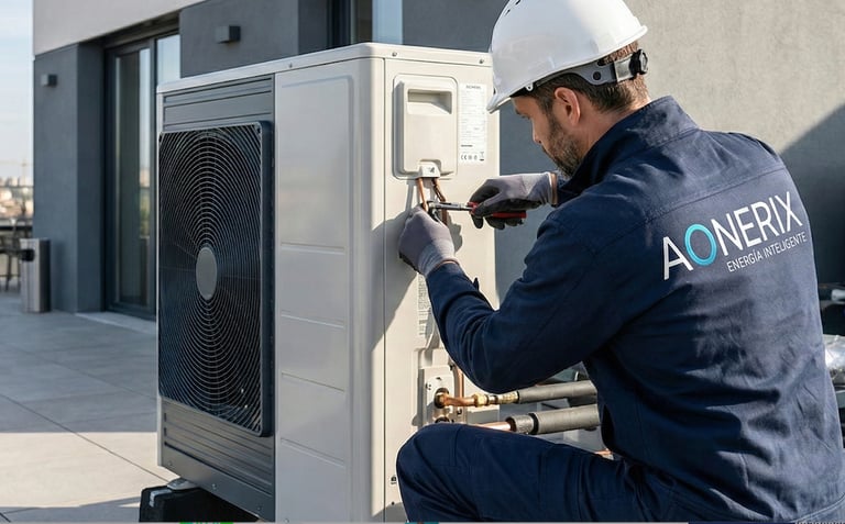 Olvídate de las soluciones rígidas. En AONERIX, entendemos que el confort es personal. Analizamos tus rutinas, la distribución y el microclima de tu vivienda para seleccionar y dimensionar un sistema de aerotermia que te ofrezca la temperatura perfecta en cada estación, sin ruido ni sobresaltos. Una instalación diseñada para pasar desapercibida y garantizar tu tranquilidad.